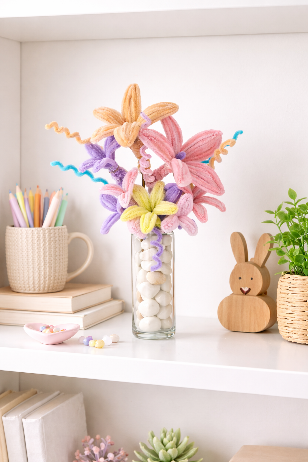 Bring everlasting charm to your space with this beautifully handcrafted flower vase arrangement. Designed with soft pastel flowers and arranged in a premium glass vase filled with natural pebble stones, this décor piece adds warmth and elegance to any setting.