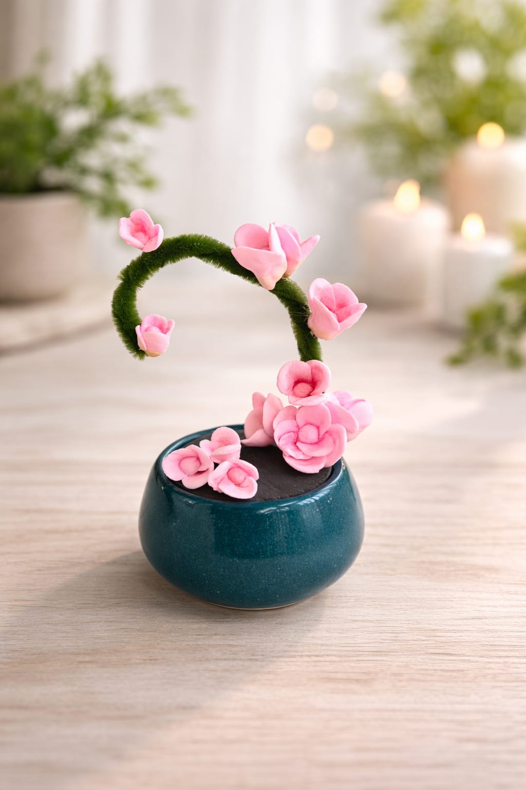 Handcrafted Mini Pink Blossom Tabletop Décor with Ceramic Vase